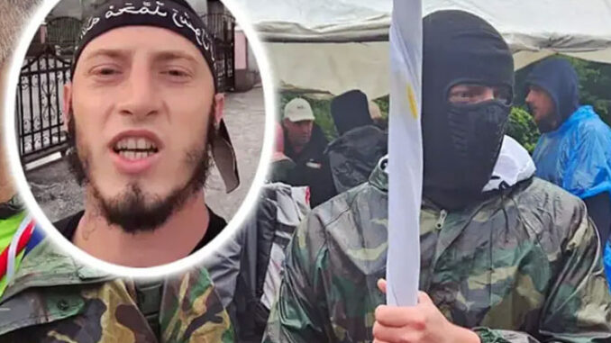 Ćenanović je na glavi nosio povez na kojem piše „Nema boga osim Alaha, Muhamed je Allahov poslanik“.